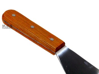 This classic spatula features a wooden handle with triple riveted design and stainless steel construction. Perfect for making any meal, you'll love the way this spatula feels whether you are flipping pancakes or burgers.