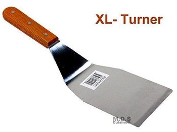 Turner Burger XL Heavy Duty Polished Stainless Steel Grill Spatula Scraper Wood