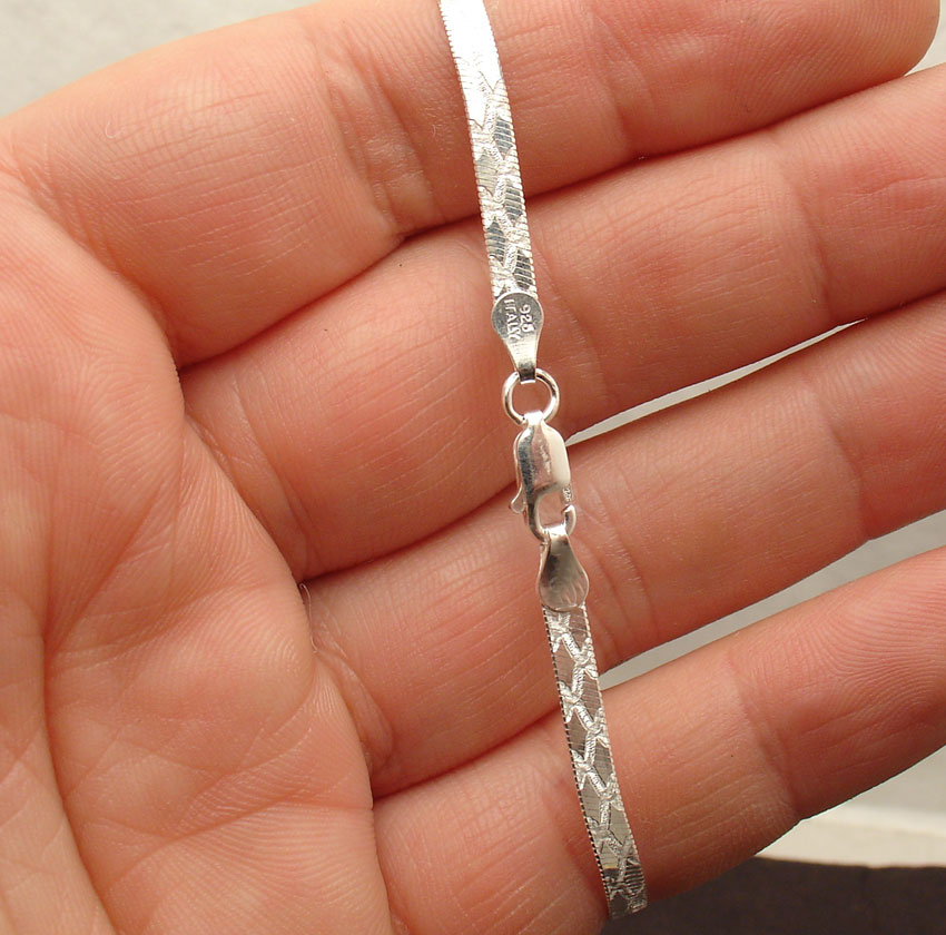 7" 3.3mm Reversible Diamond Cut Herringbone Bracelet Solid 925 Silver ITALY