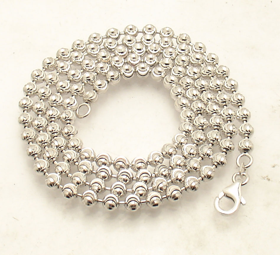 4mm Diamond Moon Cut Ball Bead Chain Necklace Real Sterling Silver ITALY QVC |