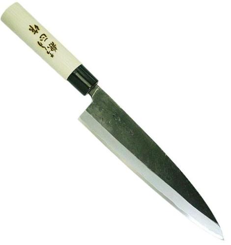 High grade Japanese kitchen knives for professional use. Its blade cutting edge core is made of Hitachi White Steel #3 forging welded with a soft iron for high cutting performance and longer edge retention. The traditional magnolia Wooden handle with plastic bolster.