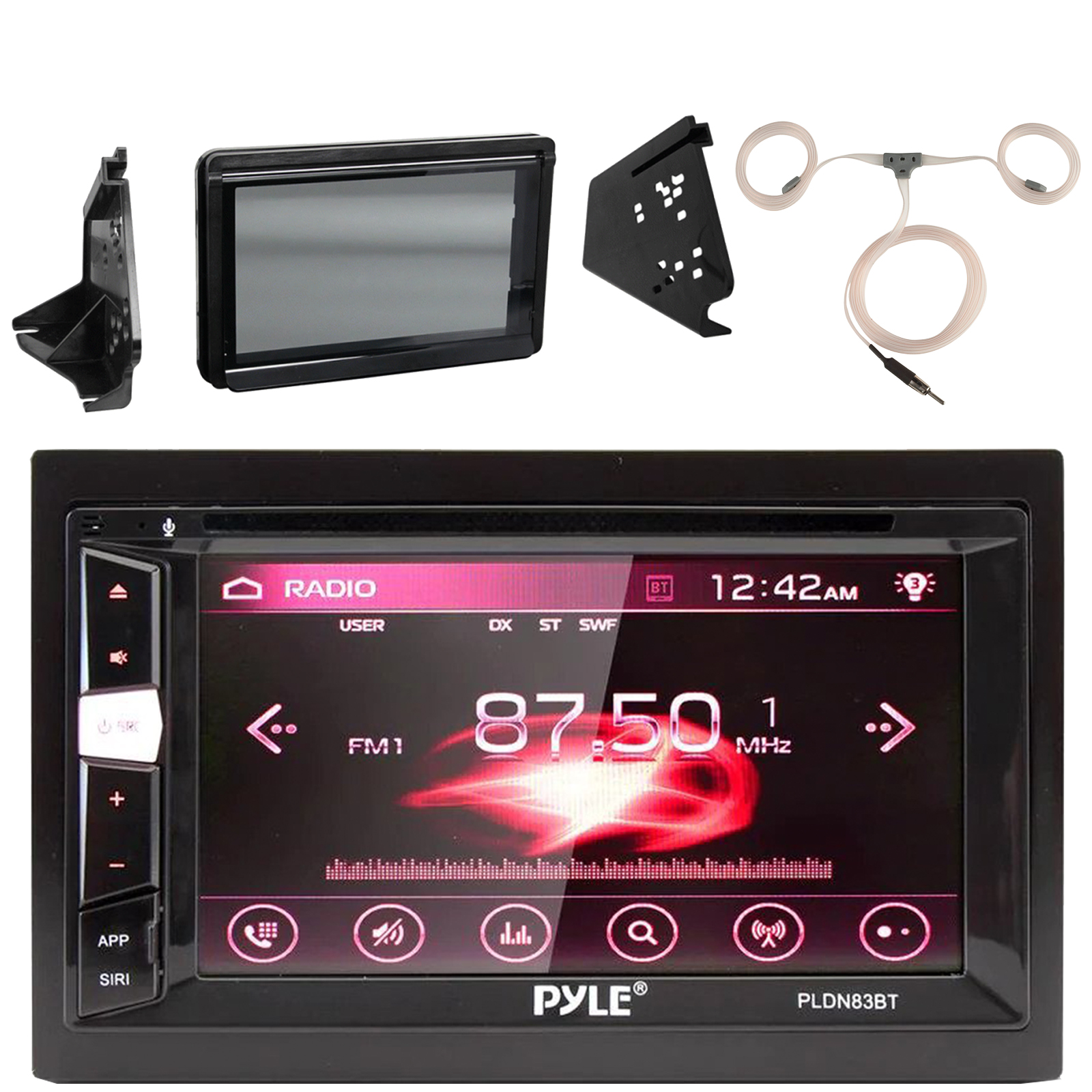 Pyle PLDN83BT.5 6.2" HD Digital Display Double-DIN Bluetooth USB/AUX DVD/MP3 AM/FM Multimedia Receiver, 22" Radio Antenna W/31" Wire Extension, Double-DIN Stereo Install Kit (Fits Slingshot 2015-Up)