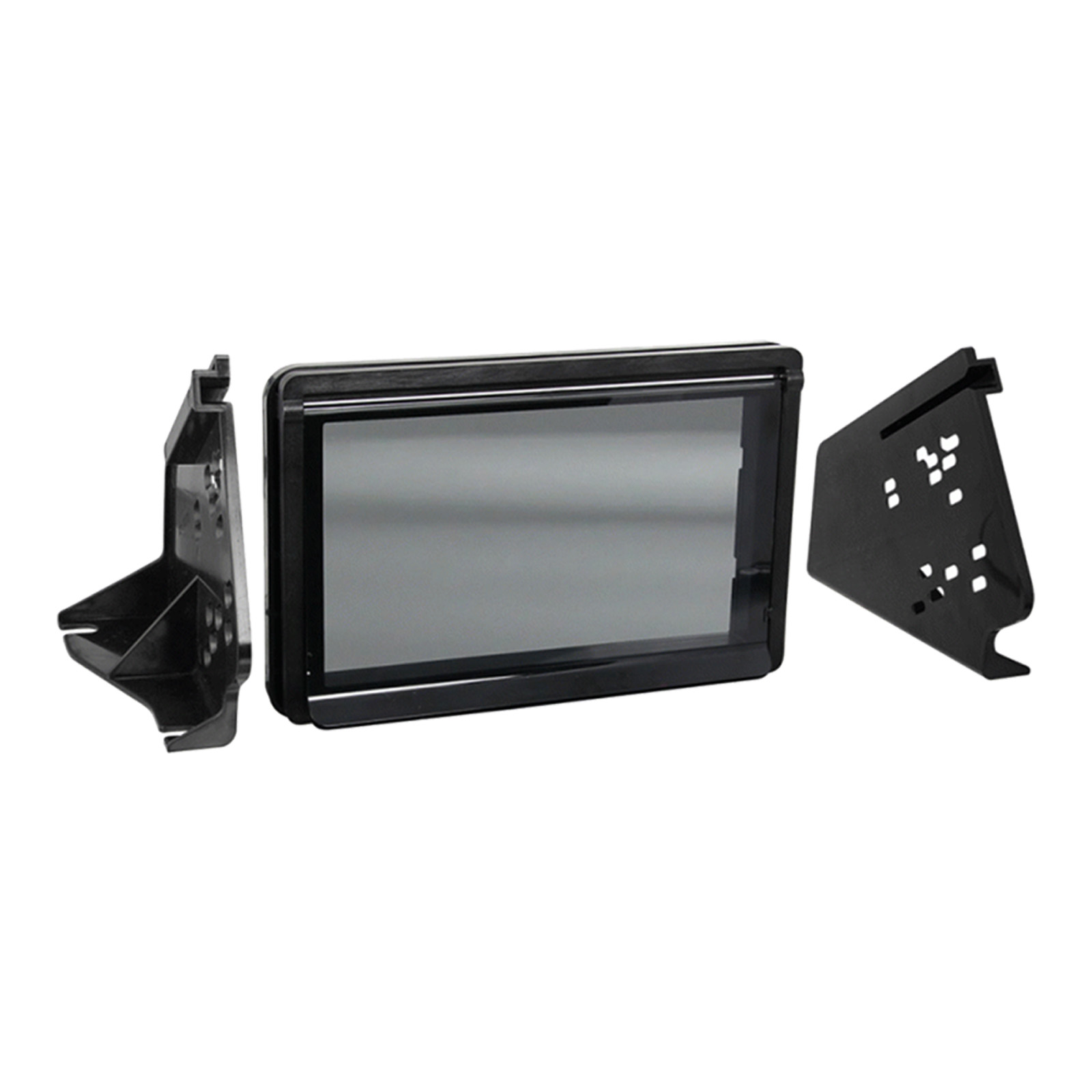 This kit provides the ability to install an ISO DIN radio with pocket, as well an ISO Double-DIN aftermarket radio. The textured dash panel has an integrated tinted splash guard.
