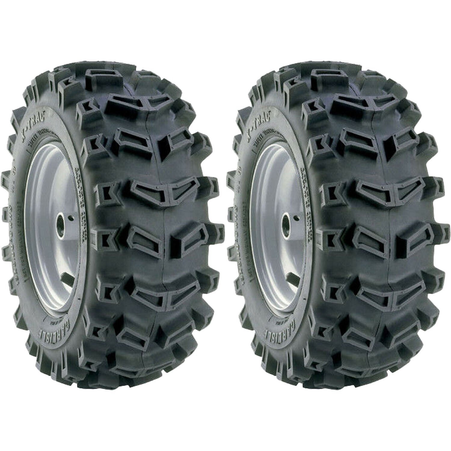The Carlisle X-trac tire has an aggressive tread excellent for snow throwing equipment and other applications requiring aggressive traction. Features angled center lugs for maximum bite with squared prominent edge lugs for traction across the entire face of the tire. Bundle is for 2 tires