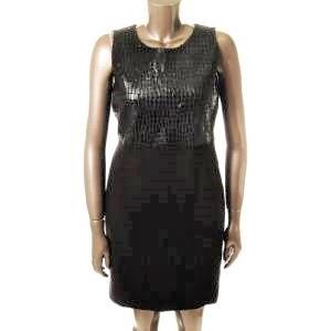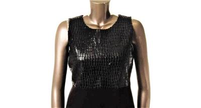 Black Sleeveless Knee-Length Party Cocktail Sheath Dress ~ Black Leather Like Crocodile Upper ~ Thick Lined Fabric For Smooth Fit!