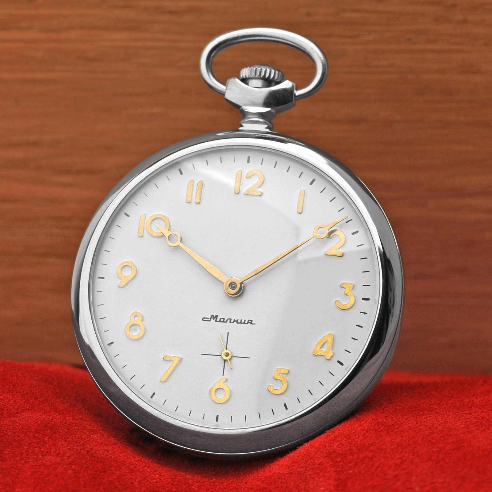 Eine seltene russische mechanische Taschenuhr Marke "MOLNIJA" GOST 10733-98.