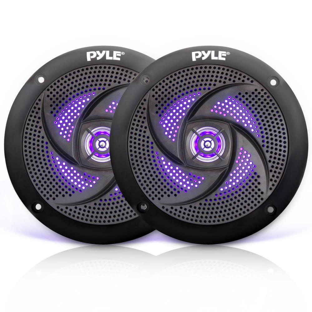 Pyle Marine Speakers - 5.25 Inch 2 Way Waterproof and Weather Resistant Outdoor Audio Stereo Sound System with LED Lights, 180 Watt Power and Low Profile Slim Style - 1 Pair - PLMRS53BL (Black) (x2) Sound Around - PLMRS53BL Pyle Model : PLMRS53BL Pyle’s marine speakers are constructed with aluminum materials and other durable substances for a rugged sound system. The speakers are also waterproof to withstand water and weather resistant to combat sun damage. They even have LED lights for an added touch. A manual is included for very simple and easy to follow installation instructions.