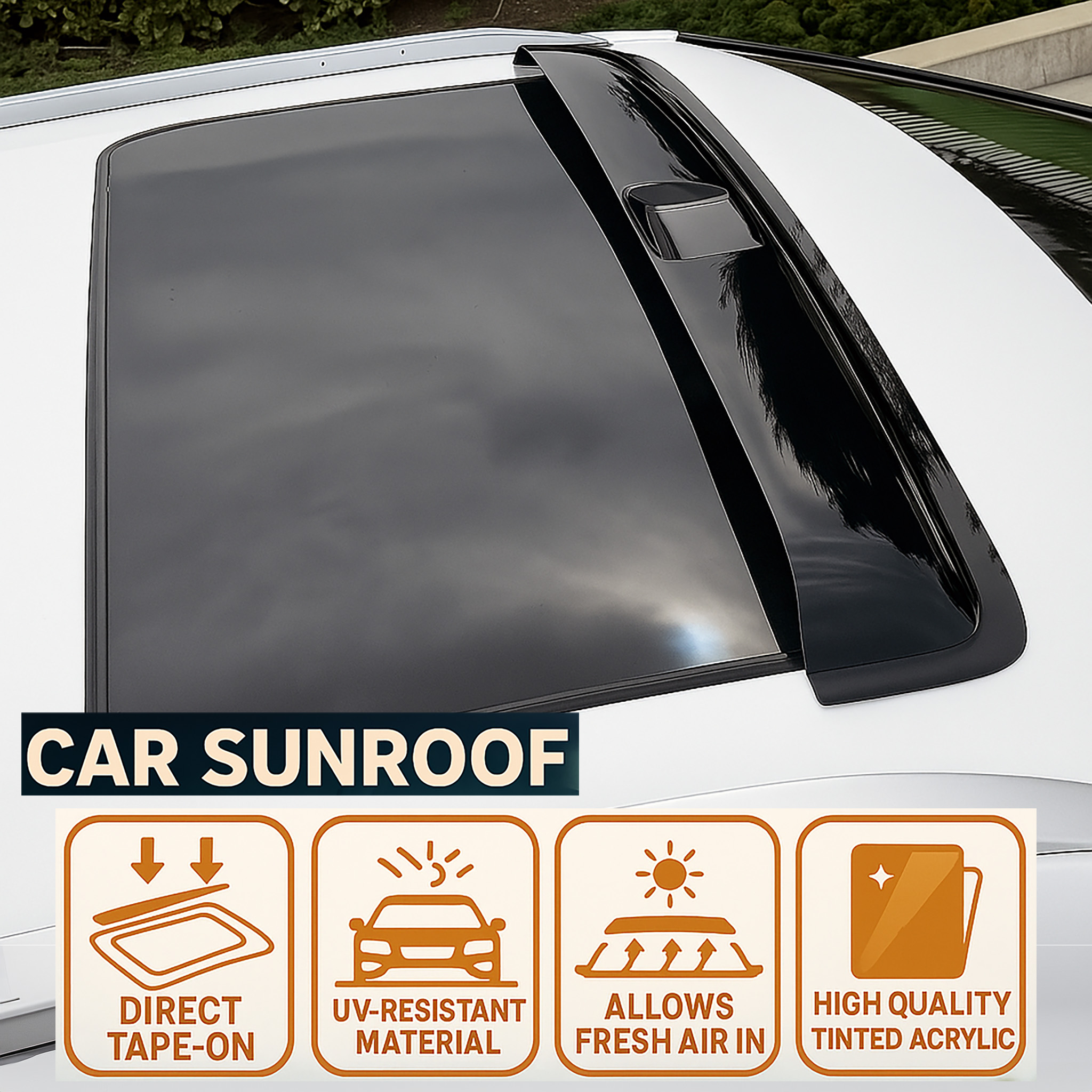 Build with high quality acrylic in dark smoke color. This Sunroof/Moon roof visor Type 2 provide long lasting durability. For a better design, it can better help reducing wind, noise and keep rain out. It's direct tape on design. No cutting nor drilling required for installation. Spec & Features: