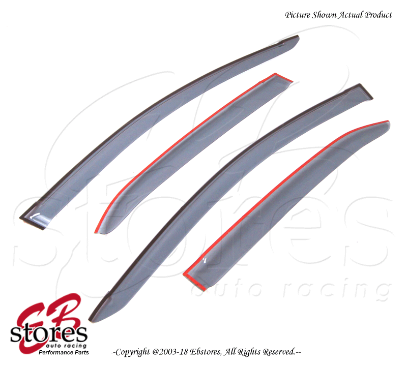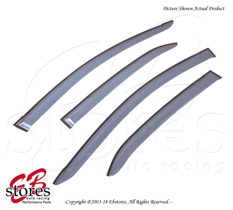 JDM vent visors are the most popular accessory. Made of reinforced acrylic in light smoke color. The vent visor keeps rain out and lets fresh air in vehicle. It can help to reduce heat buildup in parked vehicles by allowing air in when partially open. Easy installation with approved adhesive tape. Custom application to fit each model specifically (Please check compatibility table for this listing). Priced per One complete set. Coupe models will receive 2 vent shade. The Sedans, wagons and SUVs receive 4 vent shade for all 4 windows (Please check in auction title and auction picture, to see whether this listing for 2pcs visor or 4pcs visor). Spec & Features: