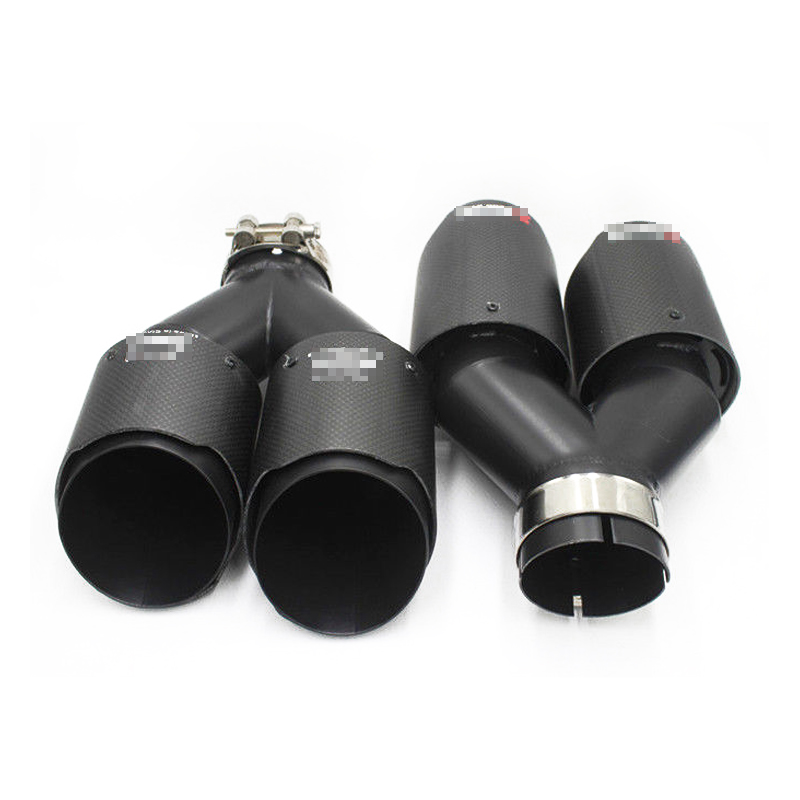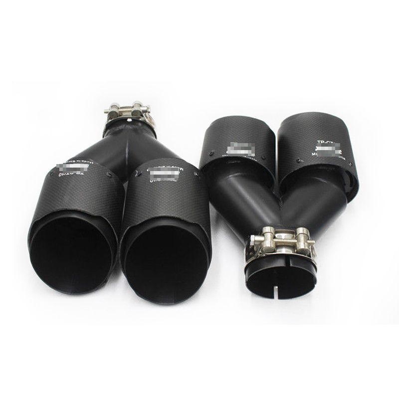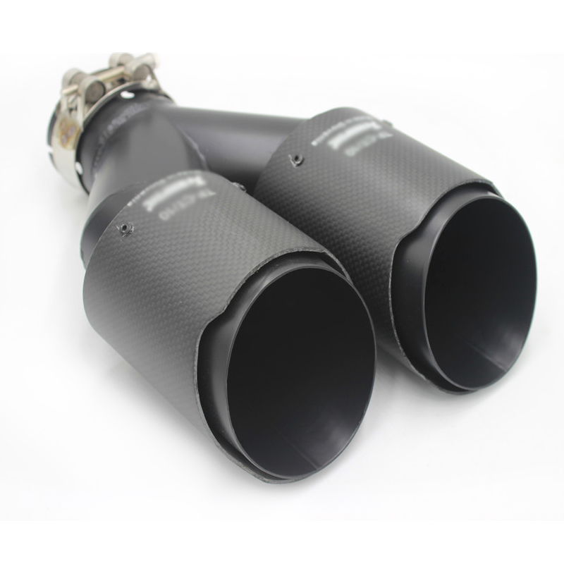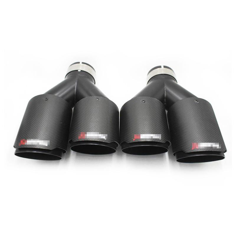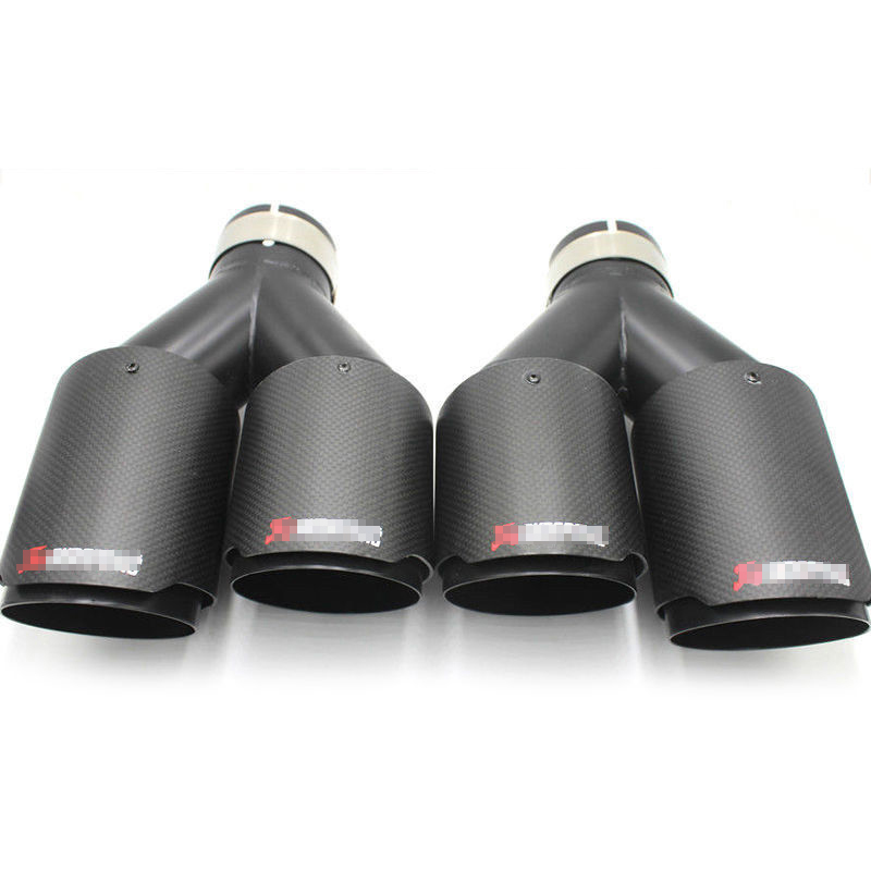 Pair Matte black Carbon+Steel Exhaust Tip 2.5" Inlet Dual Pipe Muffler Trim L+R