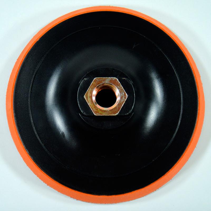 Ein Schleifteller mit Klettverschluss und M14 Aufnahmeschaft wird für Schleifarbeiten an verschiedenen Oberflächen verwendet. Er ermöglicht eine einfache Montage und Demontage von Schleifscheiben ohne zusätzliches Werkzeug.