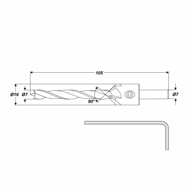 1 x Holzbohrer mit 90° Senker [Ø 7 mm]