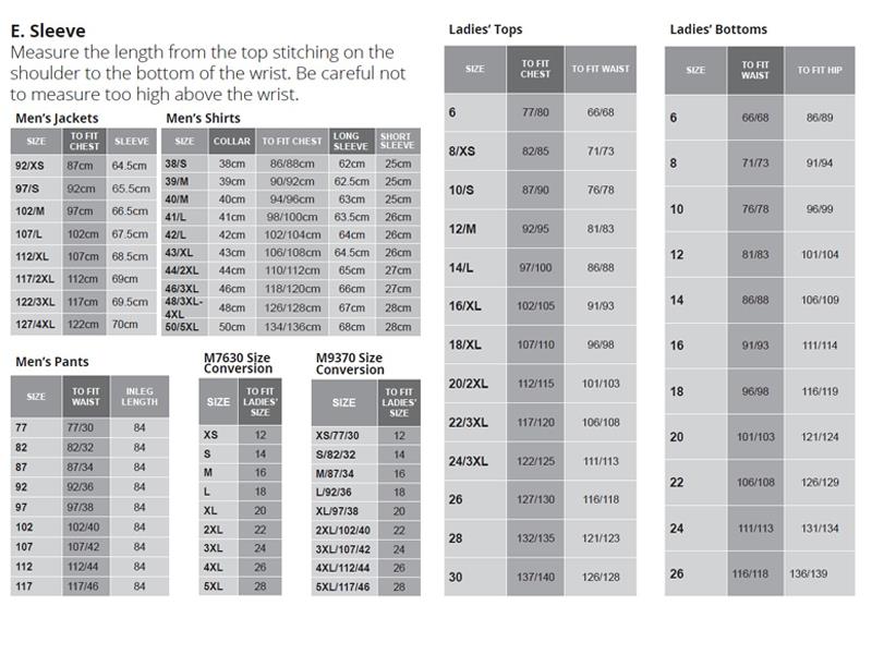 E - Pant Length (From top of waist belt to the bottom)