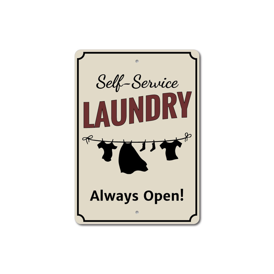 Clothes Line Sign, Laundry Decor, Always Open Aluminum Sign