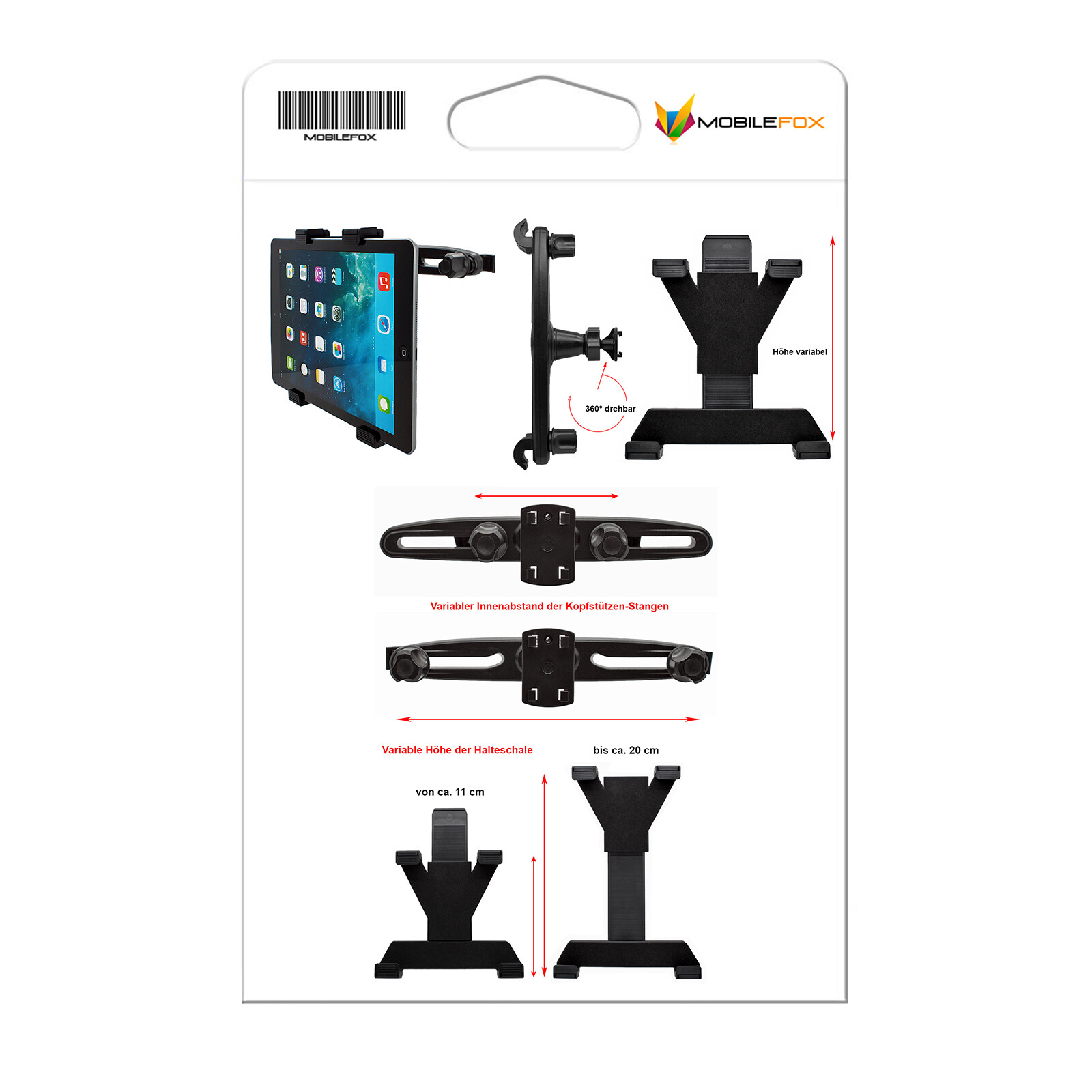 With the practical headrest mount from Mobilefox, you can quickly and easily turn your tablet into an entertainment system for travelers in the back seat of your car.