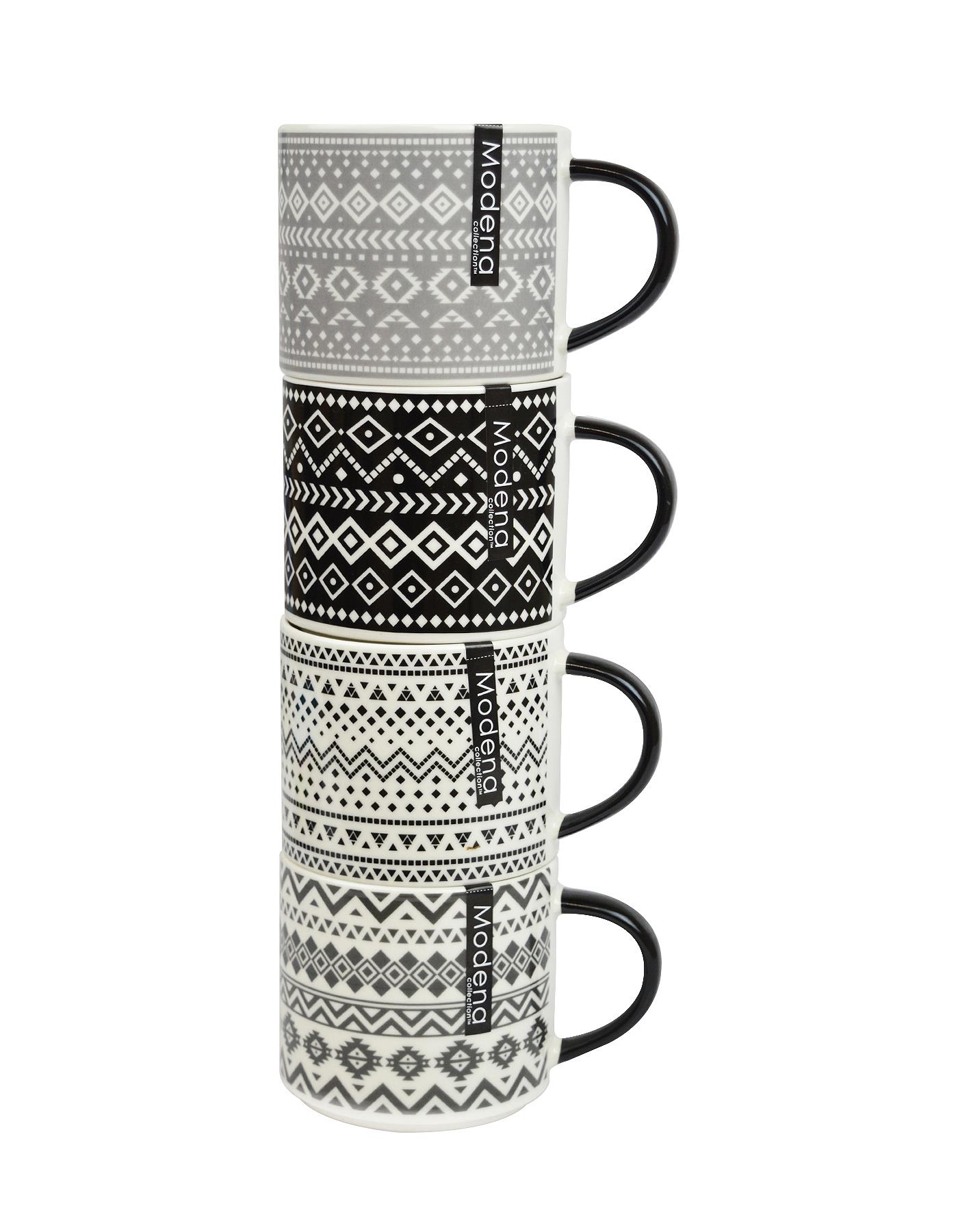 ELEGANT AZTEC PATTERN: The mugs feature beautiful black (2 x black design) and grey (2 x grey design) Aztec pattern on a contrasting cream background.