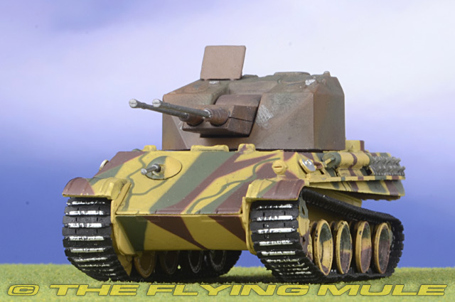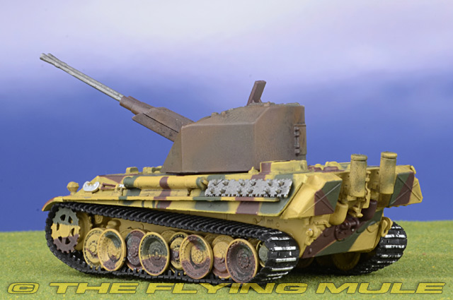 The Flakpanzer Coelian was a self-propelled anti-aircraft gun design by Rheinmetall during World War II for the German armed forces. It was intended to be armed with two 3.7 cm FlaK 43 gun in a fully enclosed, rotating turret on the hull of a Panther medium tank but was not built before the end of the war in Europe. The German Army High Command issued a demand for an anti-aircraft tank based on the chassis of the Panther tank design. Rheinmetall developed "Coelian" in various versions, including one with four 20mm MG 151/20 guns, but kept having to revise designs based on changing government requirements (such as demands for more modern guns with longer barrels). Eventually, in May 1944 a turret with a single 5.5 cm gun was developed, together with another with twin 3.7 cm FlaK 43 guns. However, it soon became clear that no chassis would be available for Flakpanzers for a variety of reasons, including the Allies" landing in Normandy, the increasing Allied strategic bombing offensive, and raw material shortages. By mid-February 1945, only a wooden prototype of the 3.7 cm turret model on a Panther D hull had been created. MAN Sd.Kfz.171 Flakpanzer V CoelianDesigned to replace to the PzKpfw IV, which had met its match in the new Soviet T-34, the Panzerkampfwagen V "Panther" series of heavy tanks were armed with powerful weapons and equally powerful armor protection. Thought by many to be the best German tank of WWII, the Panther featured a sloped armored turret with a long barrel 75mm main gun and an anti-aircraft 7.92mm machine gun. It was equipped with anti-magnetic paste to combat magnetic mines, and armor skirts offered further protection for the track system and crew. Approximately 5,500 Panthers were built during WWII.© Copyright 2003-2026 The Flying Mule, Inc. Solido 1:72 ArmorThe Solido "1:72 Armor" range presents affordable, ready made diecast models of military vehicles in 1:72 scale.Solido 1:72 diecast vehicles feature:
