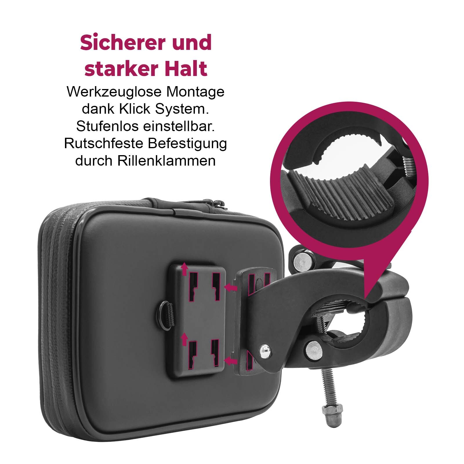 Der Fahrradhalter mit wasserresistenter Smartphonetasche von Mobilefox ist ein unverzichtbares Zubehör für jeden Radfahrer. Mit dieser Lenkerbefestigung haben Sie Ihr Handy immer im Blickfeld. So können Sie problemlos Ihre Navigationsapp nutzen und Nachrichten lesen.