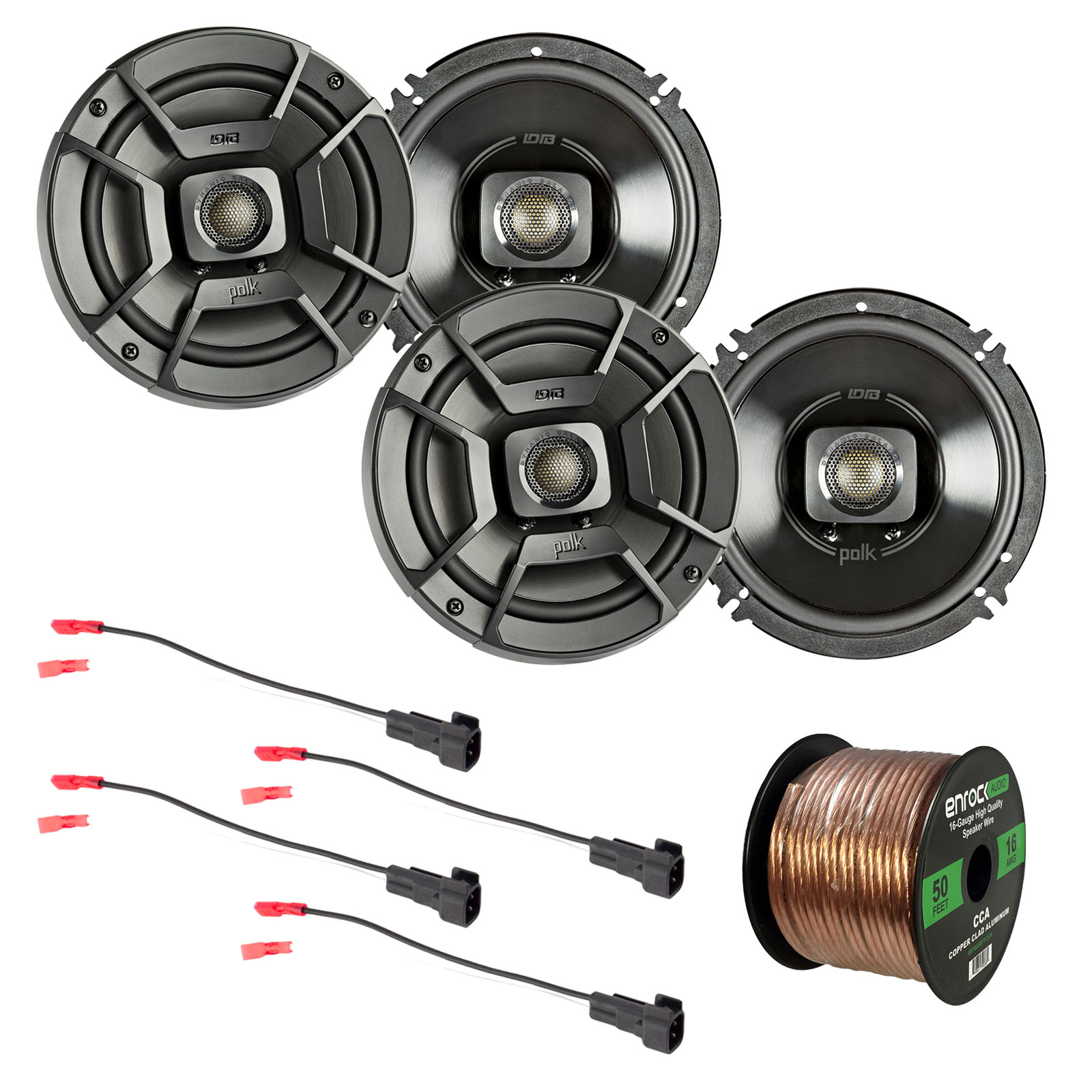 4x Polk Audio 6.5" 300W 2 Way Coaxial Speakers, Enrock Speaker Harness, 16 Gauge 50 Foot Speaker Wire - Fits Select 1998-UP Ford Vehicles