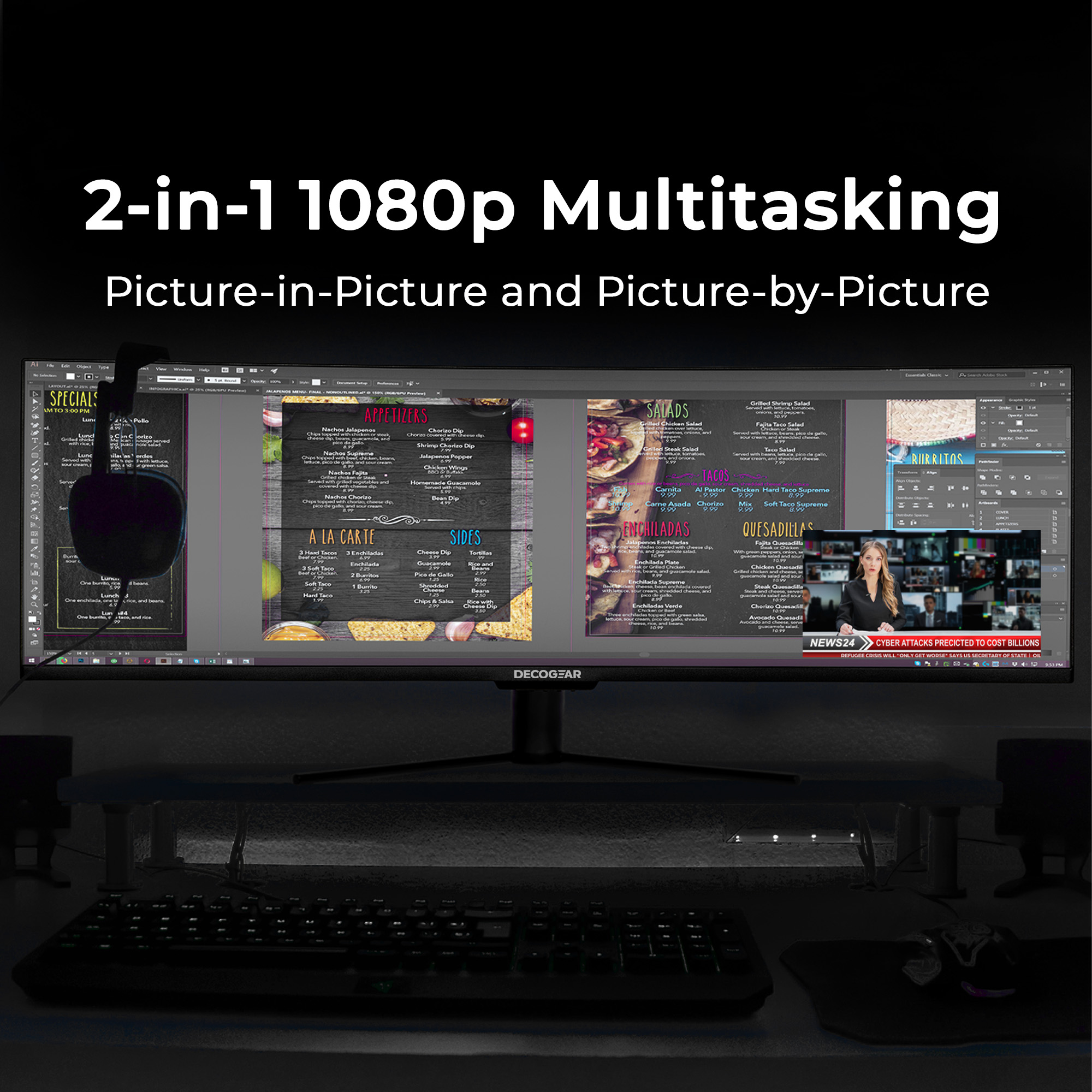 Step into a world where your screen truly expands your possibilities and not your budget. The Deco Gear DGVIEW490 has redefined what a 49” ultrawide monitor can be by delivering immersive visuals, smooth performance, 65W USB-C powered connectivity, and unmatched value. For content creators, sim racers, and multitasking professionals, this is your affordable gateway to widescreen productivity and entertainment.