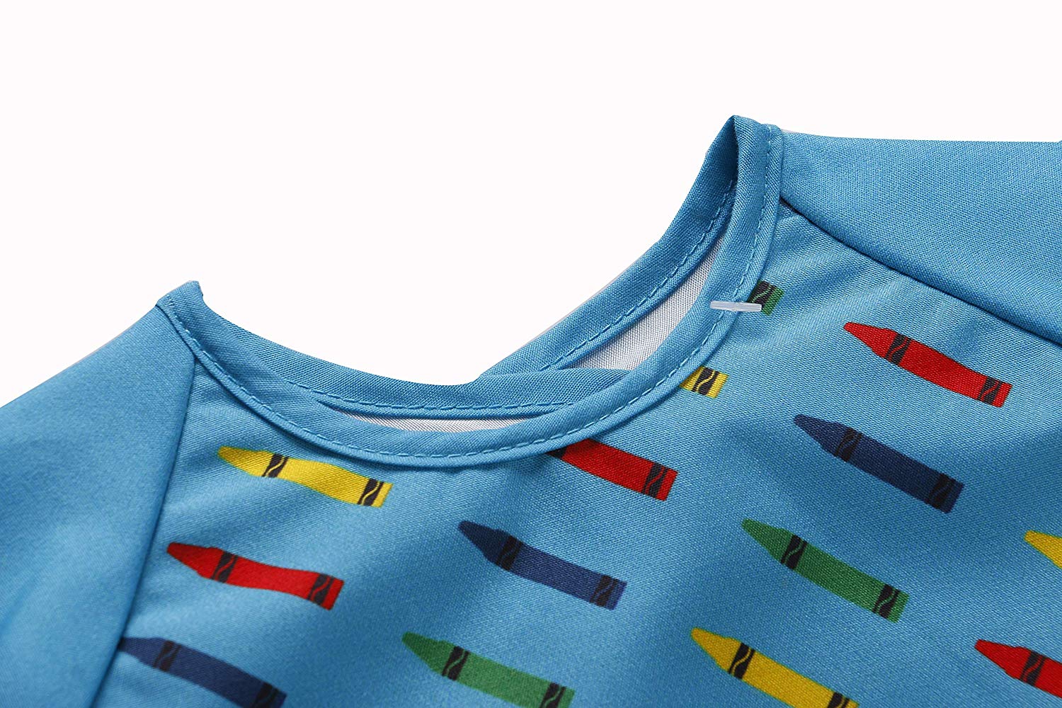 ✔ BEAUTIFUL DESIGNS: These T-shirt style aprons come in pretty prints in a variety of vivid colors suitable for boys and girls. Choose from fancy tuxedo designs, fun crayons, crunchy apples and elegant chevron patterns.