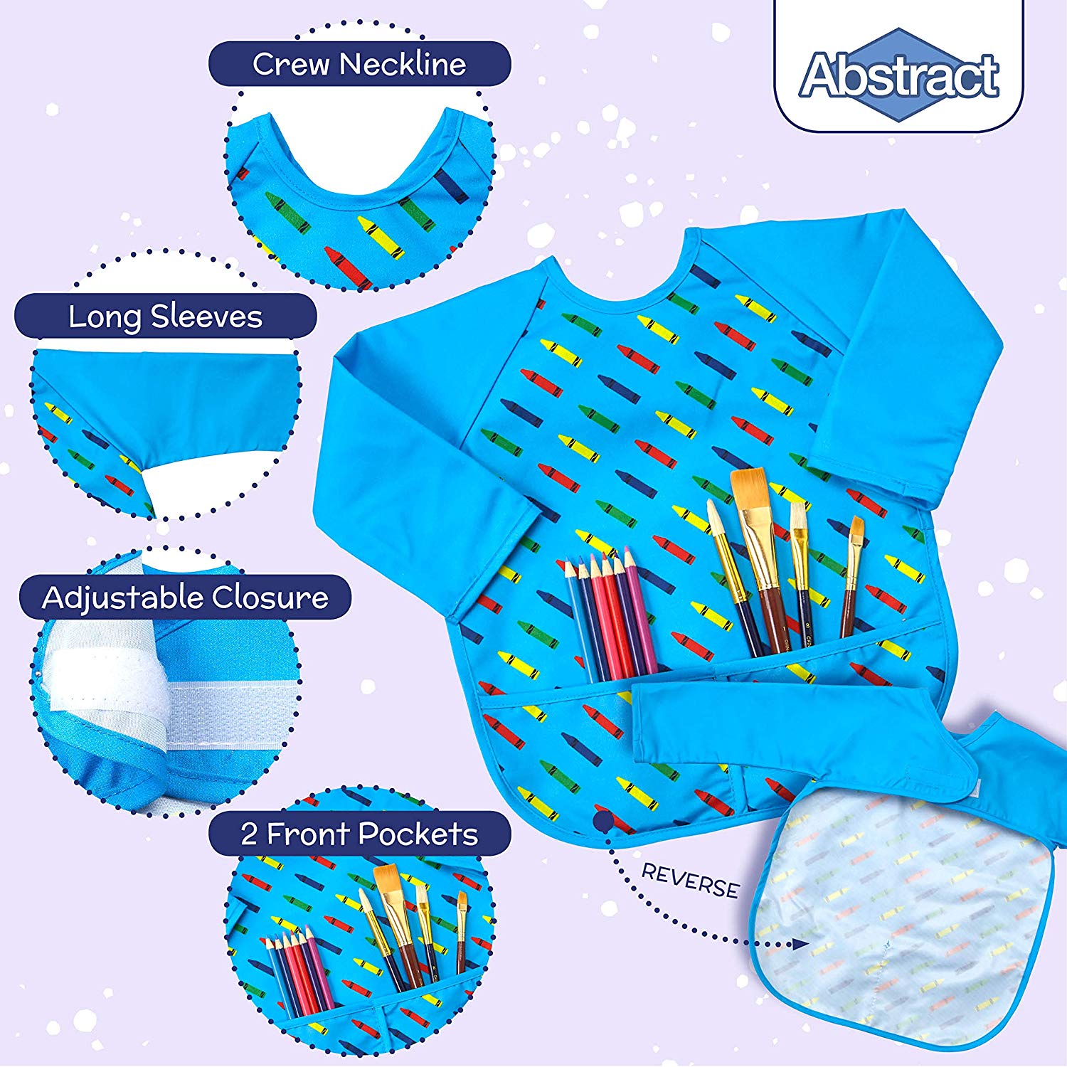 Keeping your kids clean and mess free is easy! With the Abstract Kids Smock Apron Bib you can effectively shield your children from paint, dirt, debris and spills. This smock apron provides full coverage with long sleeves. It’s fully lined and made with a water proof material that keeps children clean and dry. It’s exactly what kids need for eating and painting!