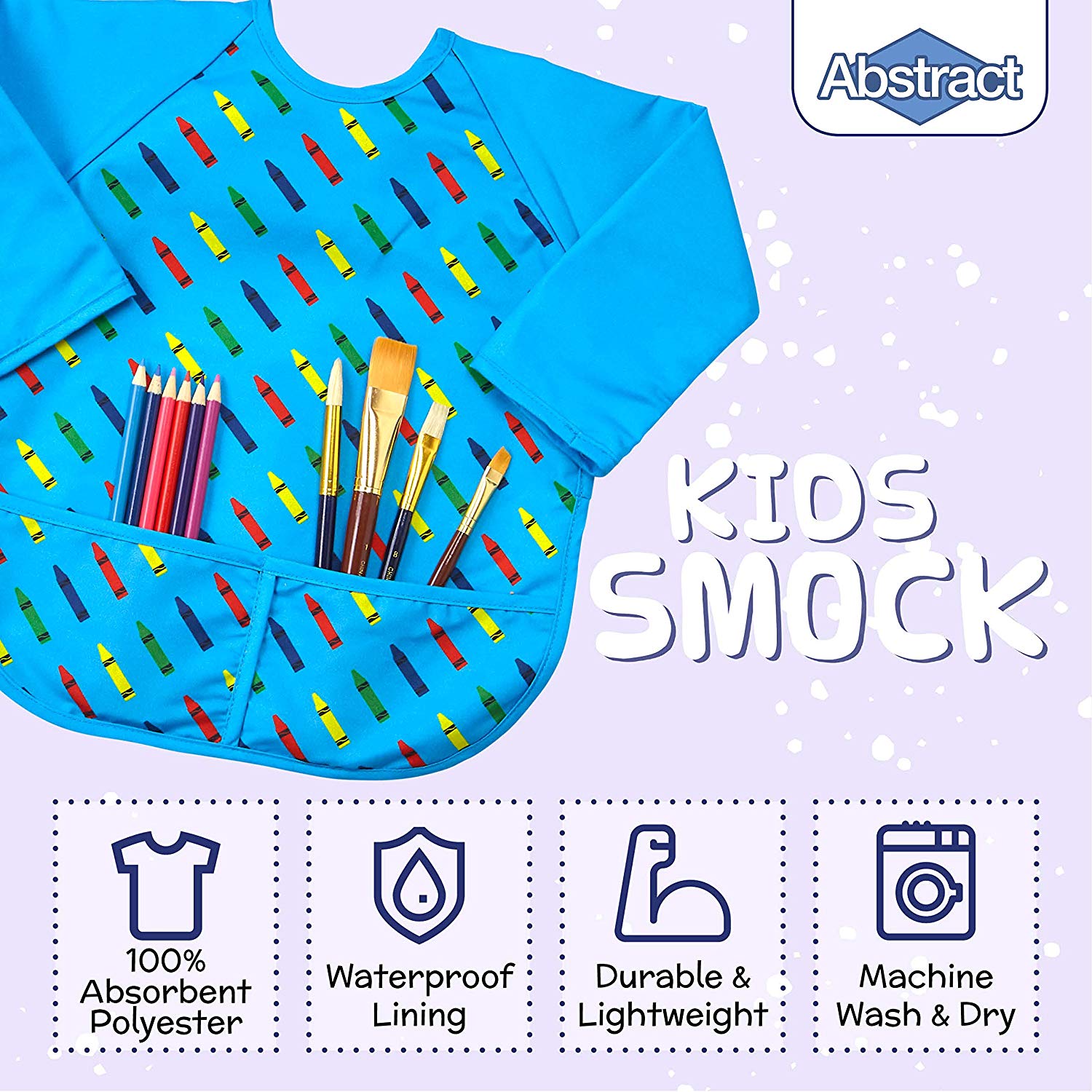 Keeping your kids clean and mess free is easy! With the Abstract Kids Smock Apron Bib you can effectively shield your children from paint, dirt, debris and spills. This smock apron provides full coverage with long sleeves. It’s fully lined and made with a water proof material that keeps children clean and dry. It’s exactly what kids need for eating and painting!