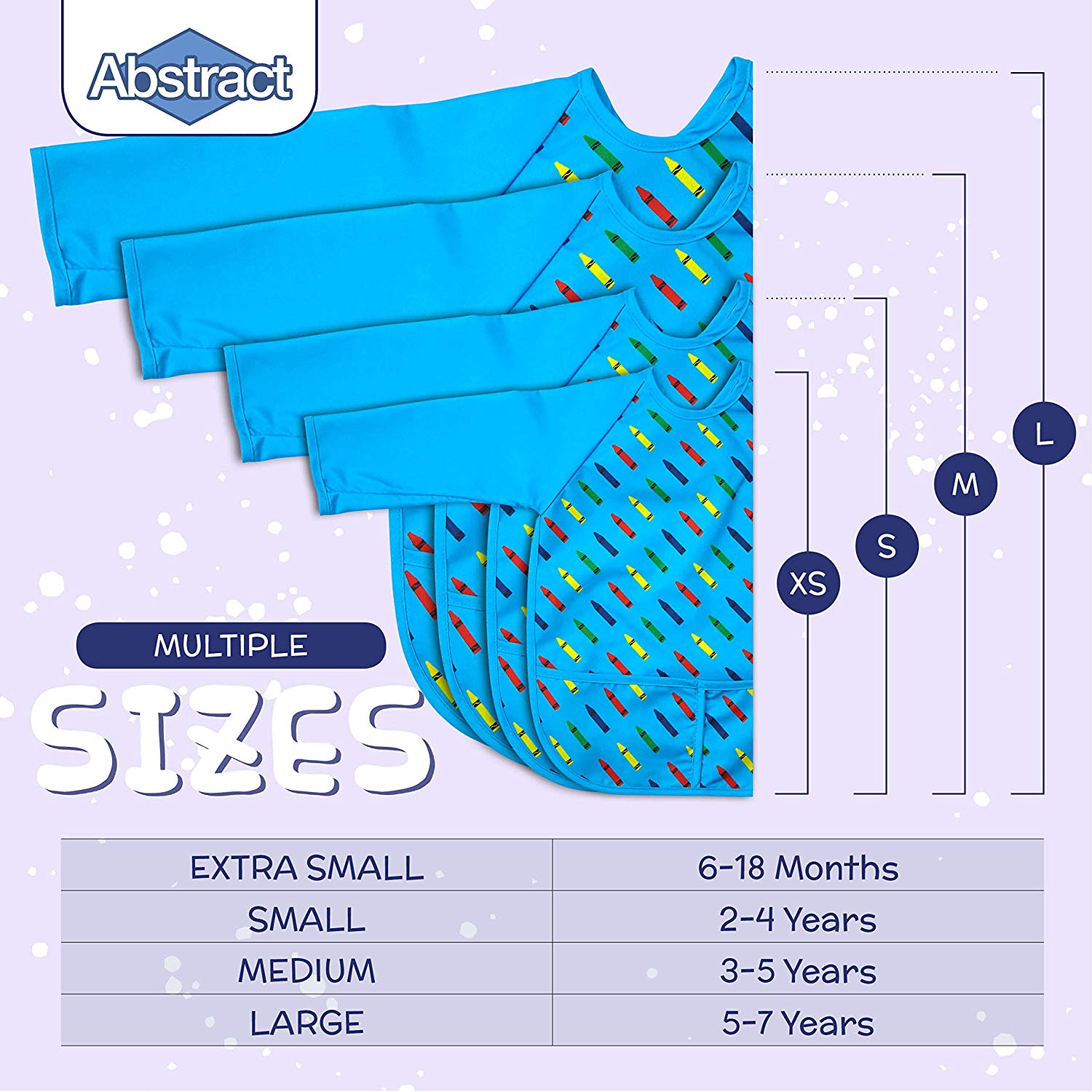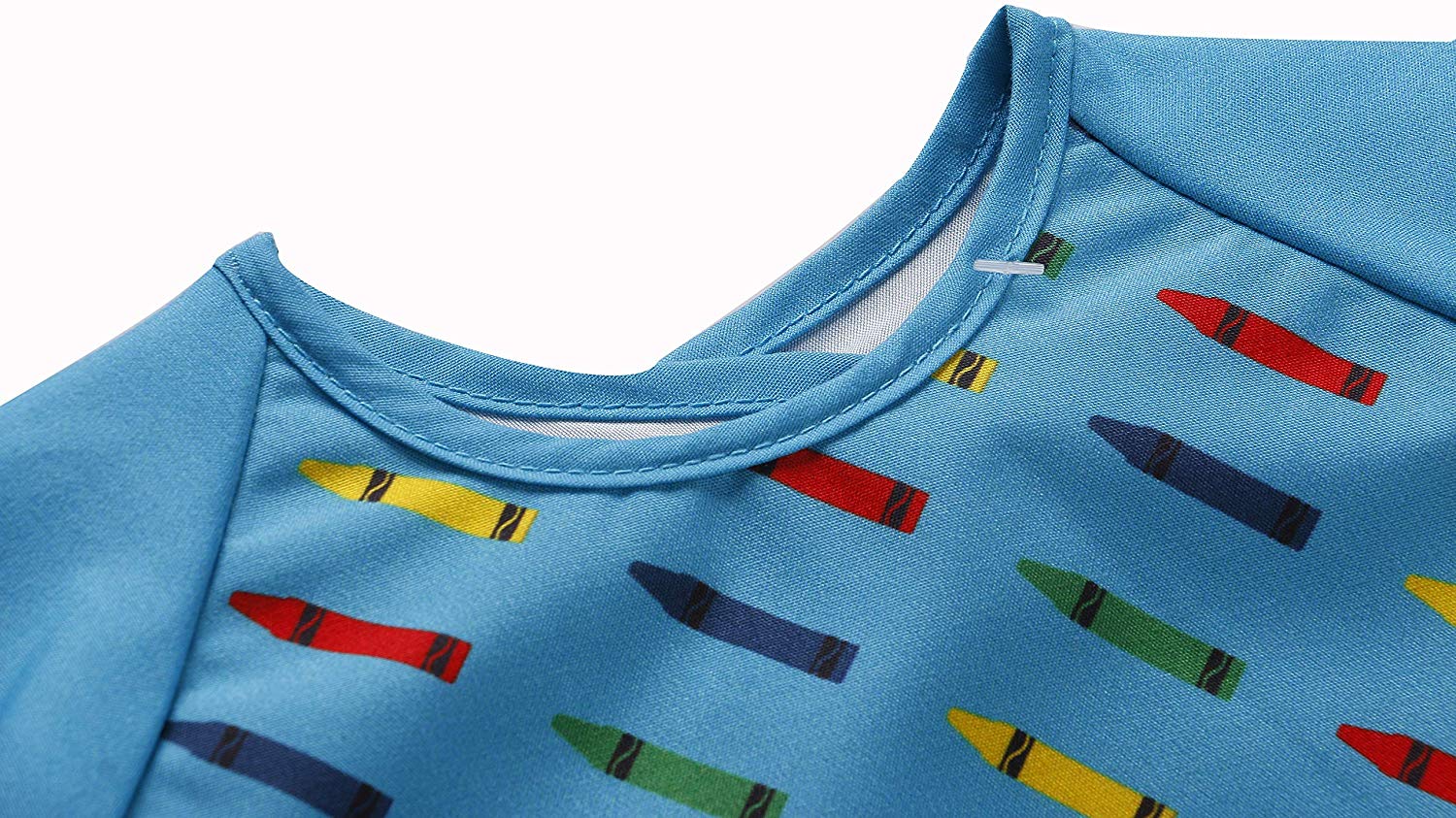 ✔ BEAUTIFUL DESIGNS: These T-shirt style aprons come in pretty prints in a variety of vivid colors suitable for boys and girls. Choose from fancy tuxedo designs, fun crayons, crunchy apples and elegant chevron patterns.