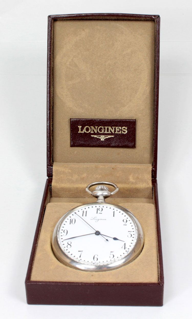 The antique Longines pocket watch is in good total condition and fully functional.