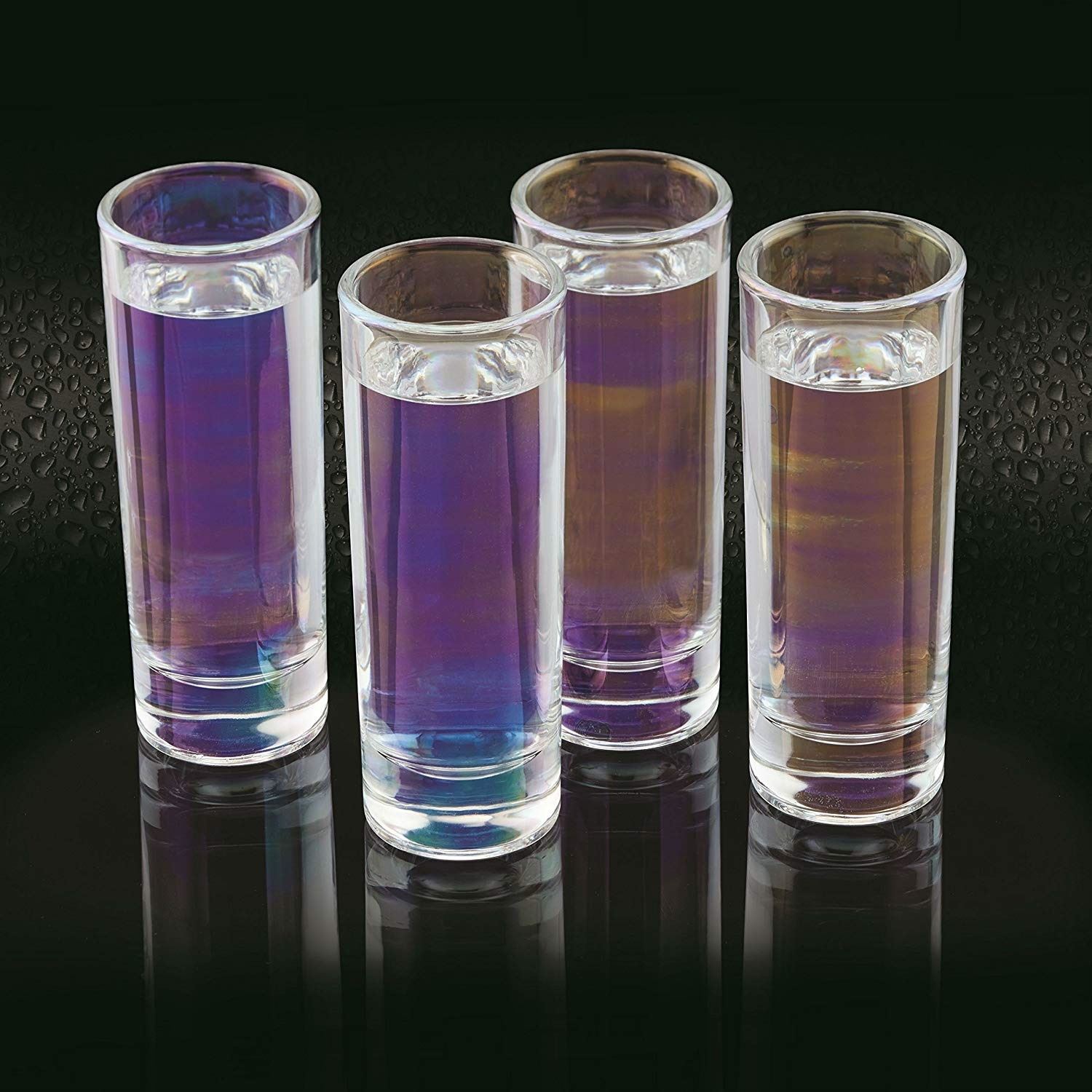 Add some shimmer to your shot, with this set of four long line shot glasses.