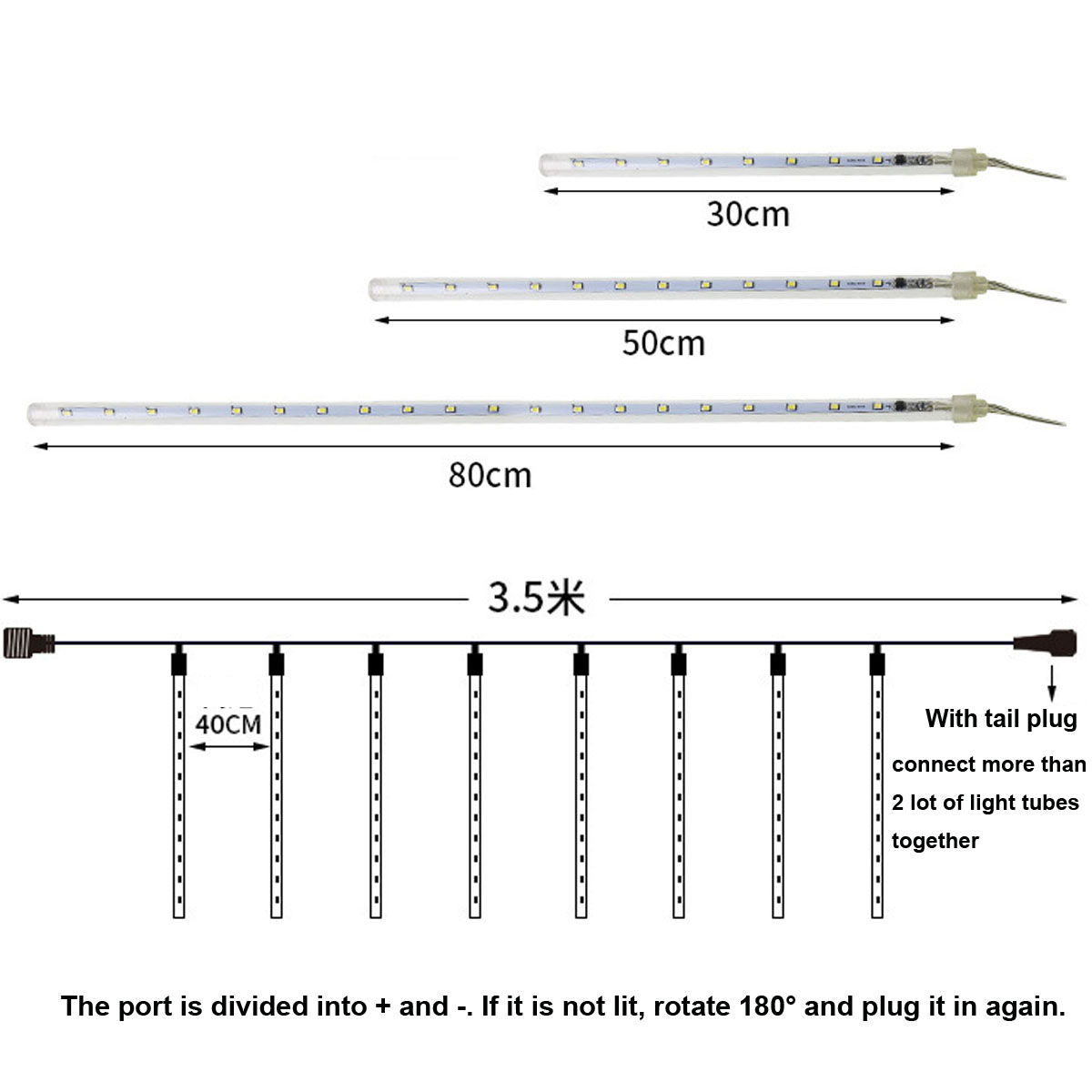 ★High quality & energy efficient. 30cm/50cm/80cm length, 8 light tubes,total length is 350cm, Distance between led tubes 40cm
