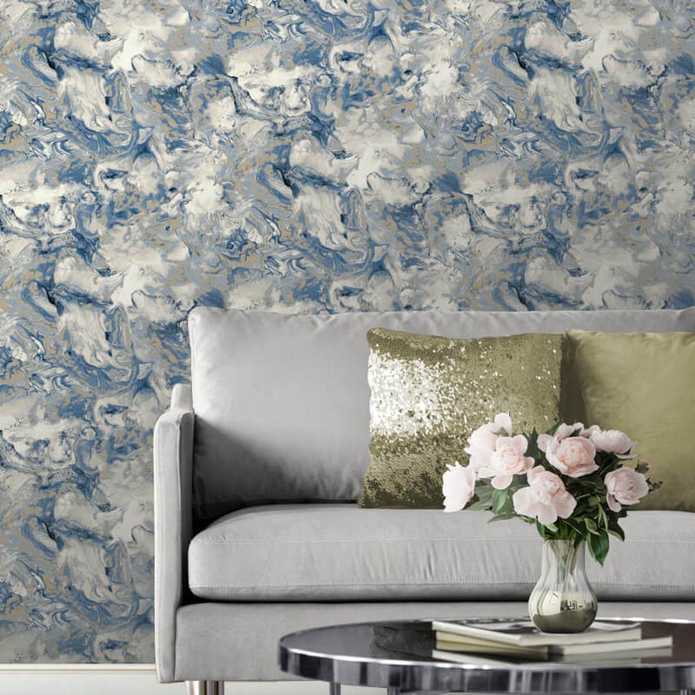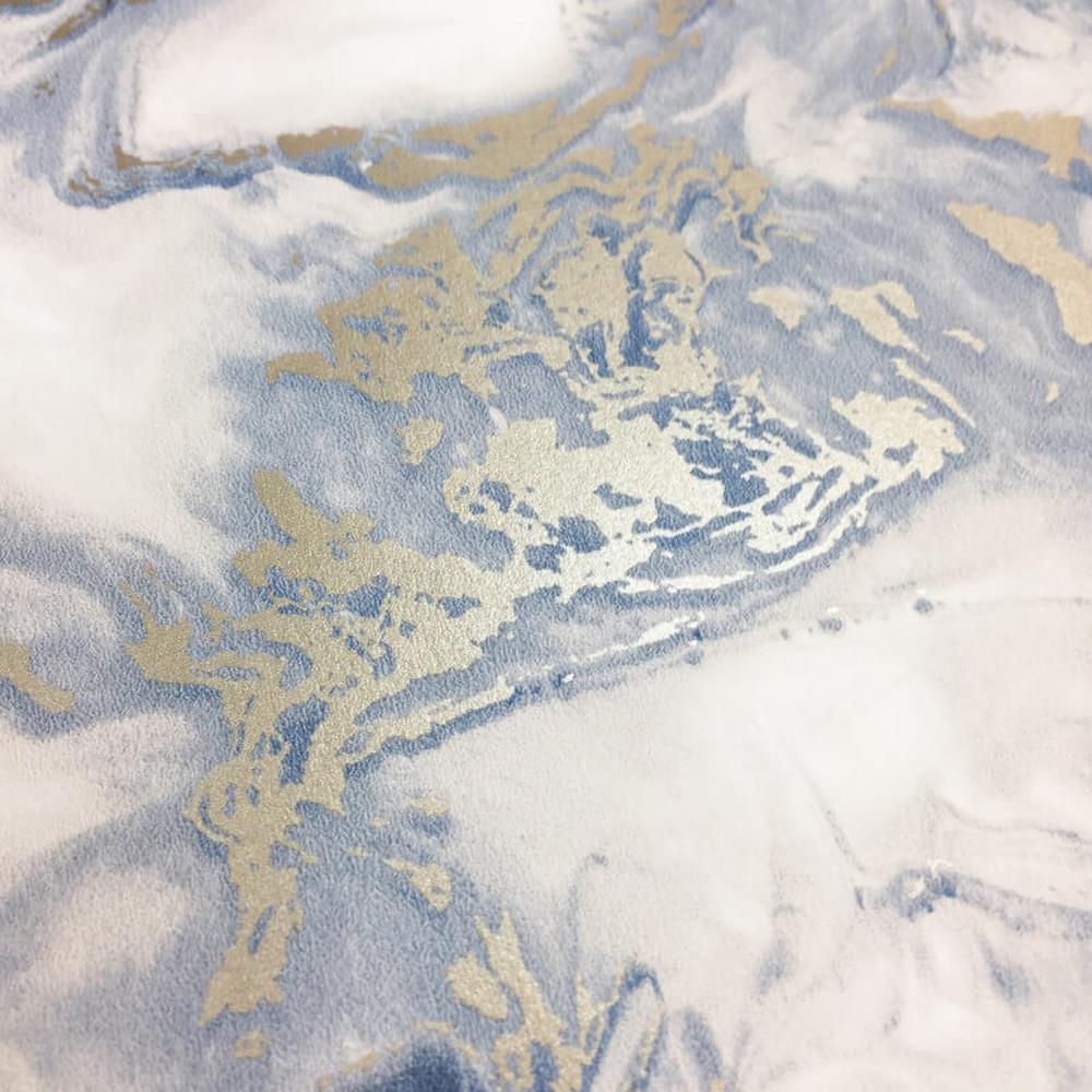 The Muriva Elixir Blue/ Gold Metallic Wallpaper is an easy way to add a dash of colour to your walls. This striking wallpaper is sure to make a welcome addition to your home. Features a liquid marble effect with a metallic finish in a stylish blue and gold colour palette for a truly mesmerising wallpaper.
