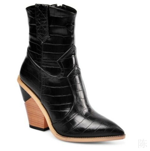 Western Womens Cowboy Pointy Toe Chunky Heel Chelsea Ankle Boots Big Size 34-45