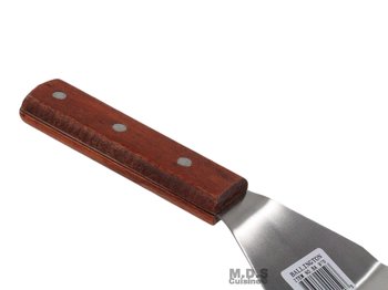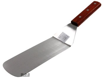 This stainless steal spatula has a wooden handle, that gives it a sophisticated and stylish look. It's blade is 7.5 inches long and 3 inches wide, making it the perfect size for Icing or flipping large or small foods.