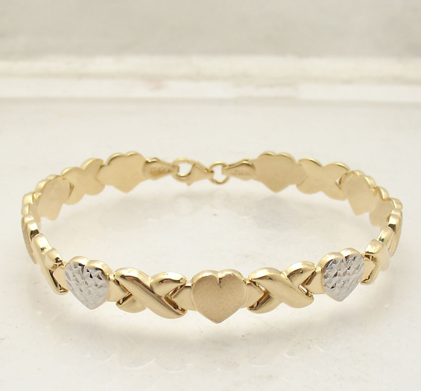 7" Hearts & Kisses Bracelet 10K Yellow White Two-Tone Gold Clad Silver 925