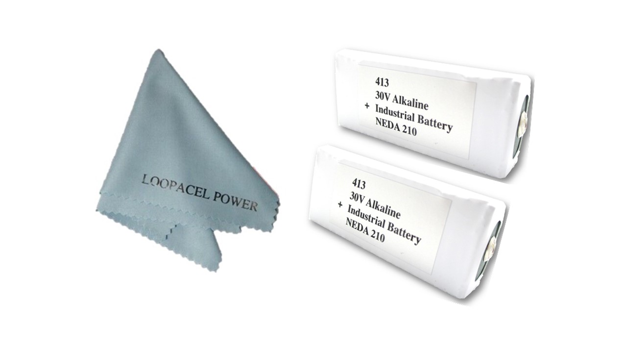 2 Loopacell 413 30V Alkaline Industrial Battery NEDA 210 with Loopacell Cloth