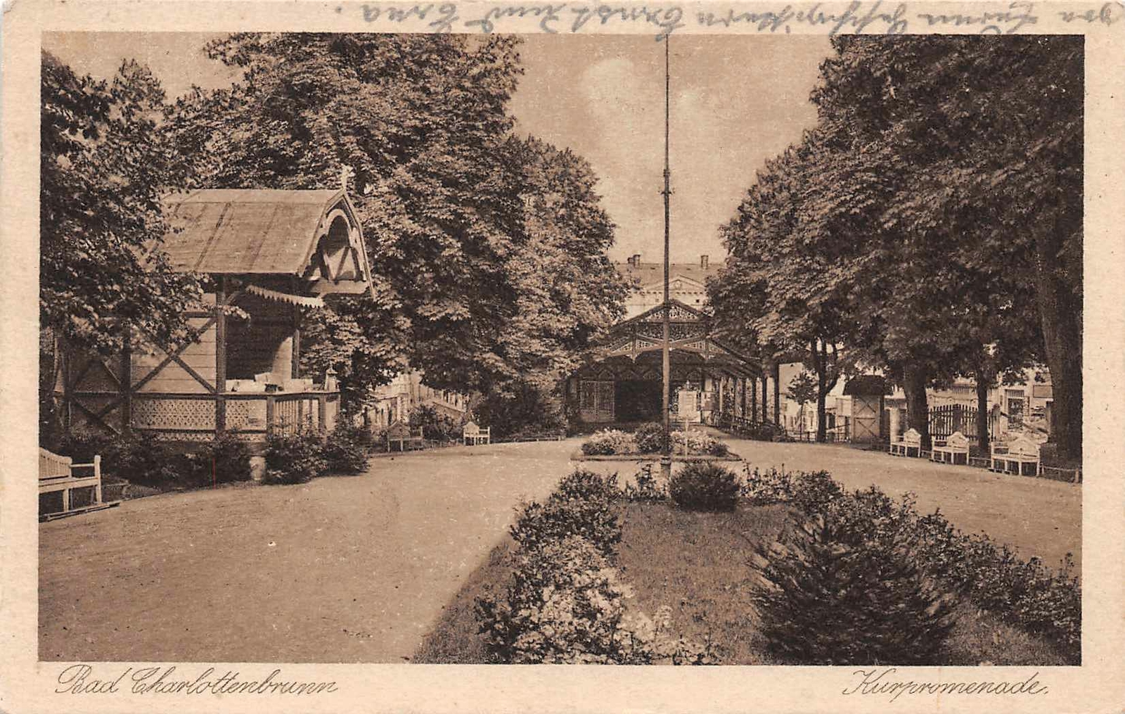 AK Postkarte Bad Charlottenbrunn Jedlina Zdroj Kurpromenade Schlesien