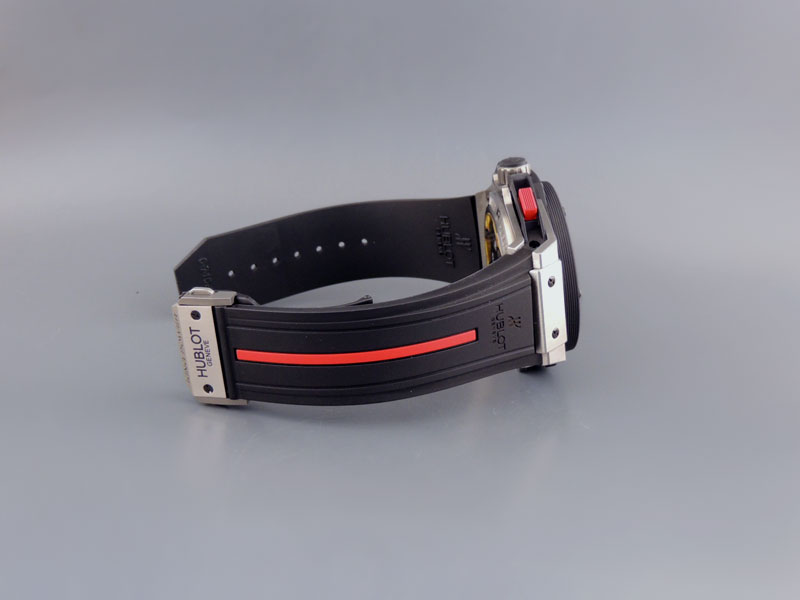 Hublot... Sporty... Red decorated Black Rubber Bracelet/Strap with Hublot Genevé Deployant buckle.