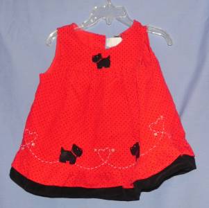 Color: Red with black polka dots and black trim....scotty dog design