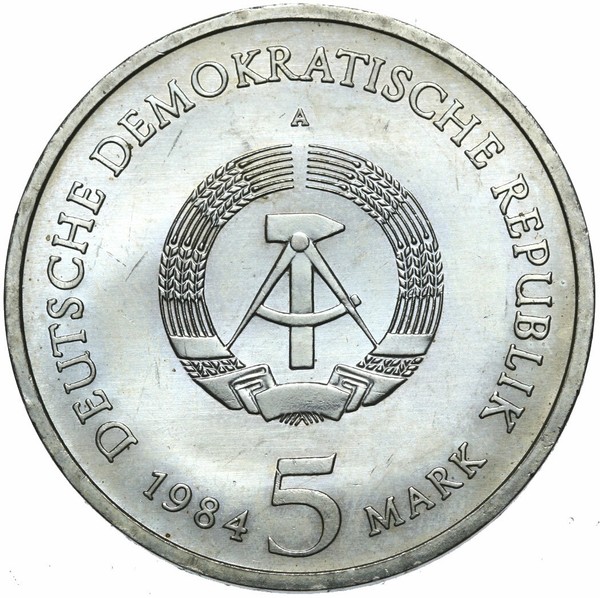 Gedenkmünze DDR - 5 Mark 1984 A - Thomaskirche Leipzig - Stempelglanz UNC.