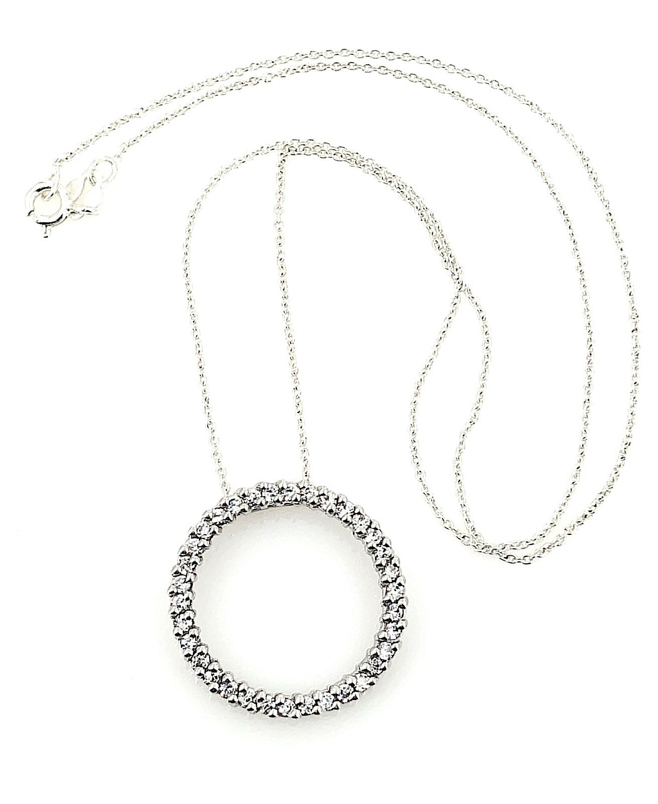 This Lovely Classic Circle Necklace weighs 4.2 grams, the Pendant measures just under 1" in diameter, 3mm thick and the stones are about 2mm. A perfect Gift idea! It is Pre-owned, see condition description. Although we are not experts, jewelers or gemologists, we make every attempt to accurately describe our items. All Gemstones and Sterling unmarked items are tested. If you are not satisfied with a purchase, we offer a money back guarantee.