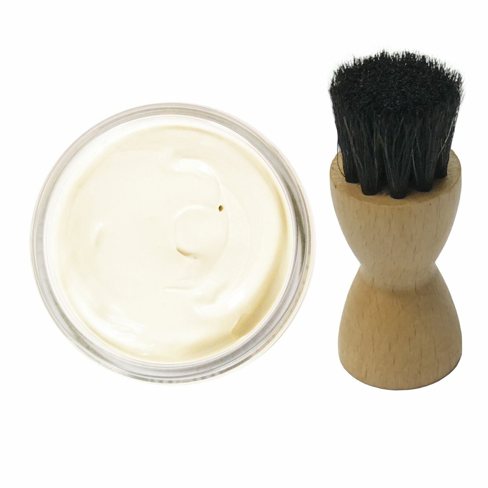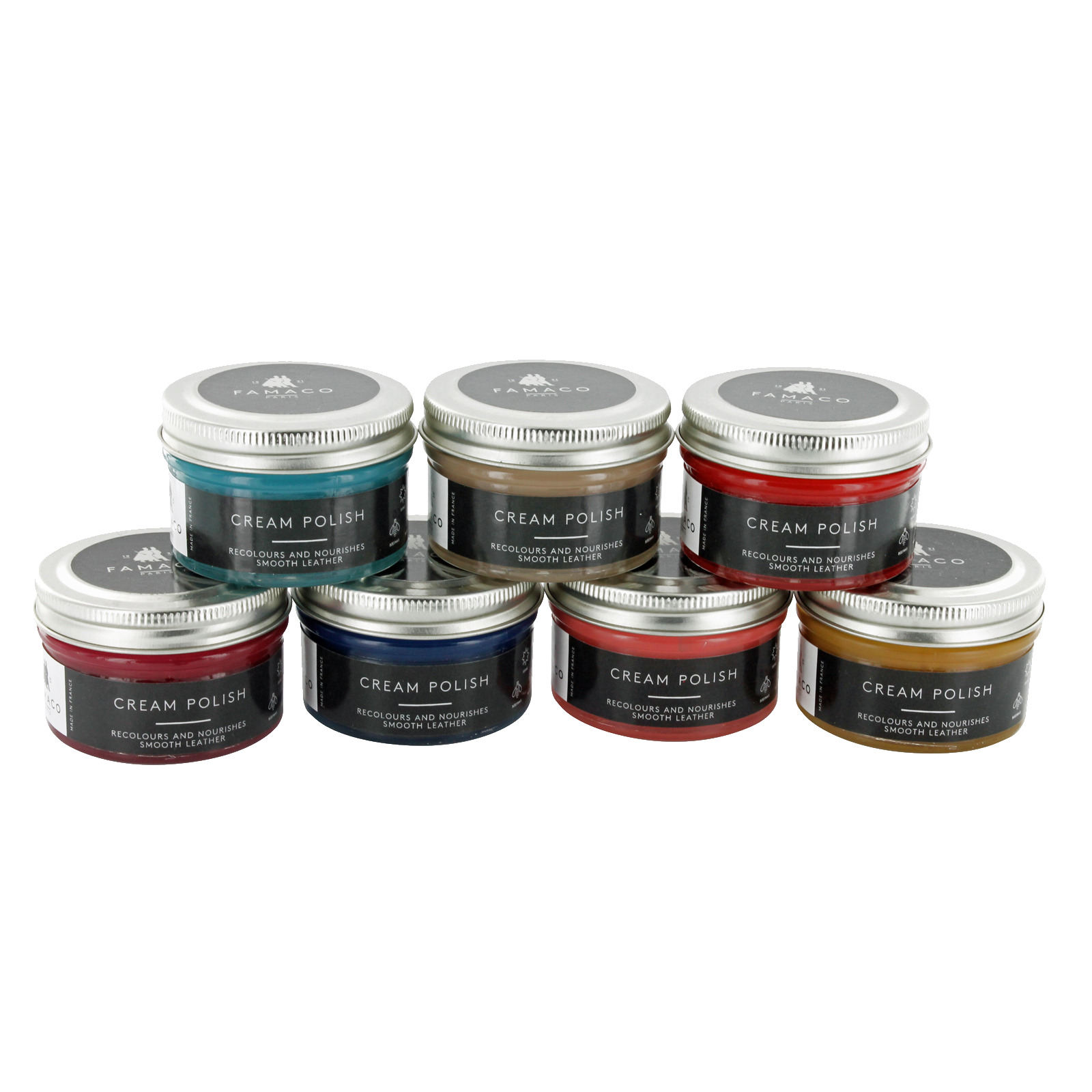 Famaco Cream Polish is a traditional wax formulation manufactured from natural waxes including Beeswax. It is particularly suitable for smooth leathers. It is also the ideal for renovation work including furniture and other leather or smooth covered items where you wish to achieve a natural coloured shine. Building layers of cream will increase the colour and shine achieved, you do not need a complete colour match as this product enhances the existing colour of the leather without changing its character. It is easy to apply with a brush or rag/duster, is fast drying and when buffed between applications can be over coated in just 2 minutes. Can be used on any smooth leather - including Handbags, Furniture, Car Seats and more.Size: 50ml.There are many benefits to using a shoe cream. Famaco and Famaco boast an extensive colour collection, meaning there is a colour for almost everyone.Nourish and enrich the leather Add colour to bring the leather back to life Enriches the leather with wax, for added protectionModern version of the classic tin polish Easy applicationCream polish provides long-lasting wax colour and a beautiful gloss finish.The cream is suitable for all smooth leathers. It not only adds colour but also renovates and conditions the leather - bringing the footwear back to life and restoring the original quality.How to apply Cream PolishChoose your leather which you wish to renovate, and pick the closest colour match from our Colour ChartClean the shoe using a Cleaners, making sure all dirt, dust and mud has been removedWith a Cloth or Dauber Brush, apply a SMALL amount of cream to an inconspicuous area of the leather to make sure the colour is a good matchOnce happy with the colour - In small, circular motions apply the shoe cream - being mindful to not over apply. Leave to dry before applying another coatIf needed, reapply another layer of the cream until you are satisfied with the coverage.After the cream has dried, buff with a polishing cloth to a high, optimum shine! (We have found that lighter strokes make for a quicker result) Famaco has an impeccable heritage, a family-run shoe care manufacturer with over 8 decades of experience. The factory is based in the Paris suburb of Châtillon, manufacturing since to 1931, the company is now run by brother and sister Audrey and Bruno who after giving up successful careers to take over the business from their father in 2014.Raviv Cuir. “This is one of our bestselling products,” Audrey says. “We have been making it since the 1970s, people love it.”A powerful but perfectly agreeable unique to Famaco smell of beeswax mixed with a low dose of solvents lingers in the air throughout the factory and warehouse. Famaco’s head of development, Vlassis Emmanouil, enthuses an air of triumph with every batch made.FAMACO is growing in recognition as the best leather wax throughout the World.