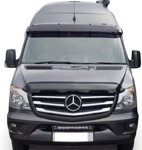 Enhance both function and style with this dual sun visor and bug guard set for Mercedes Sprinter (2014–2017). Designed to reduce sun glare and deflect debris, the solid black acrylic components provide rugged protection while upgrading the van’s appearance. Made from high-impact acrylic, this is an aftermarket solution tailored for perfect fitment—not an OEM part.