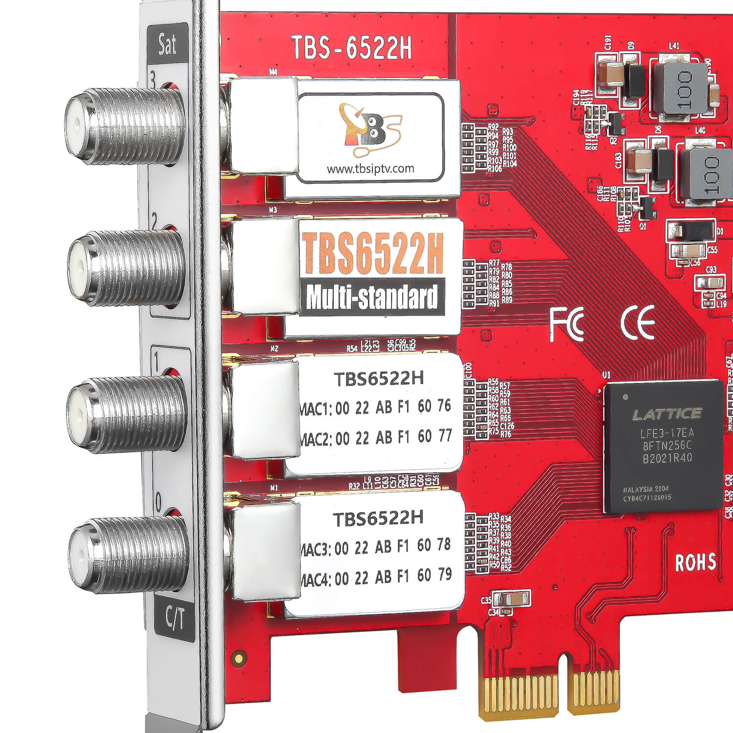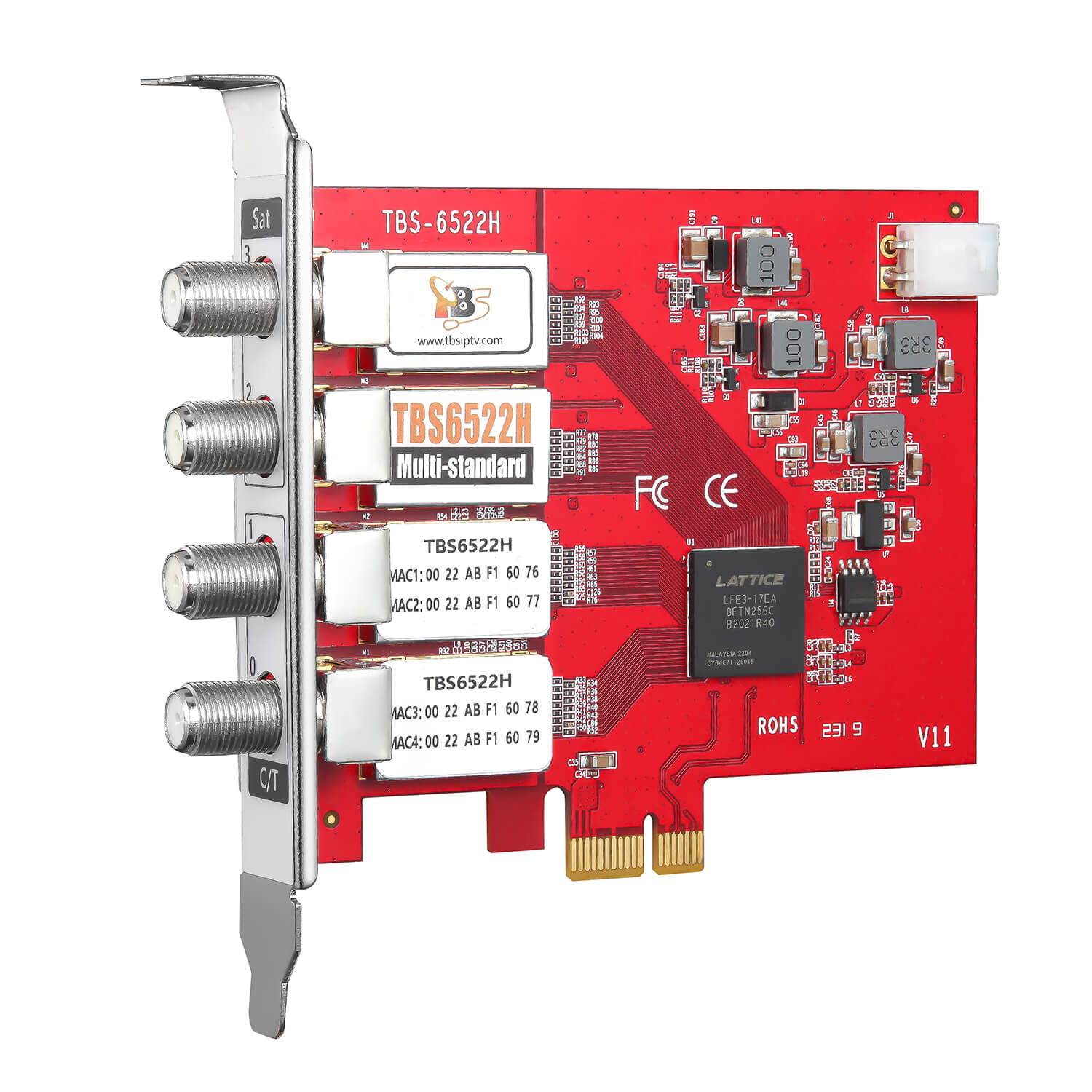 TBS6522H is a Quad tuner PCI express TV tuner card that supports multiple digital TV standards including DVB-S2X/S2/S/T2/T/C2/C (J.83A/B/C)/ISDB-T/C /ATSC1.0, four RF IN is independent with each other, it supports both dual DVB-S2X/S2 and dual DVB-T2/T/C2/C standard at the same time. With this multi-standard TV tuner card, it is much easier to switch between different digital TV signals.