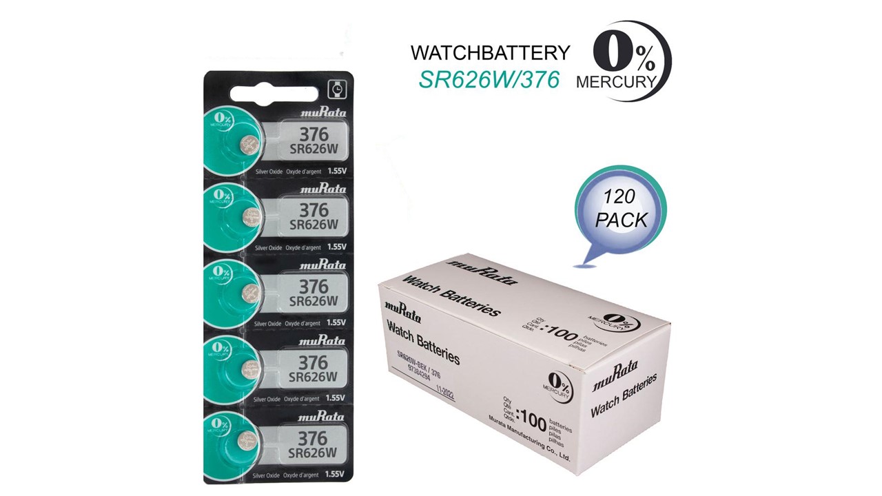 Murata 376 SR626W 1.55V Watch Battery (120 packs)