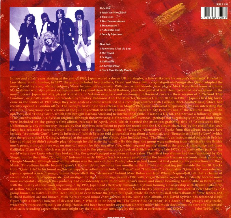| A1. Wish You Were Black A2. Television A3. The Unconventional A4. Transmission A5. Automatic Gun A6. Love Is Infectious B1. Sometimes I Feel So Low B2. The Tenant B3. In Vogue B4. Halloween B5. A Foreign Place B6. Don't Rain On My Parade |
