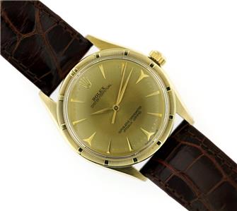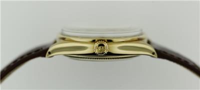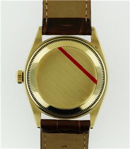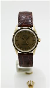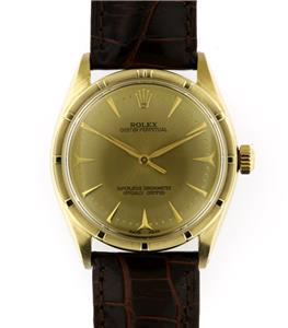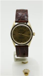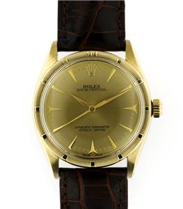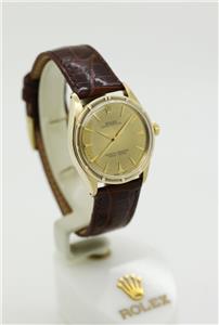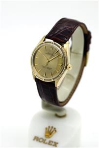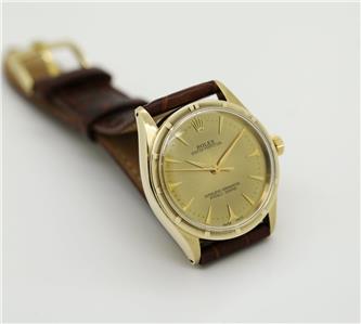 Vintage Men's Rolex Oyster Perpetual 14K Yellow Gold Watch 34mm case Champagne Space-ship Stick Dial