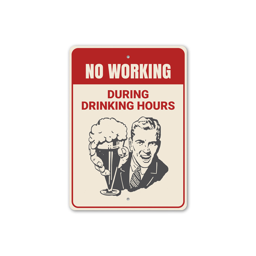 NO Working During Drinking Hours, Funny Bar Sign, Home Bar Aluminum Sign