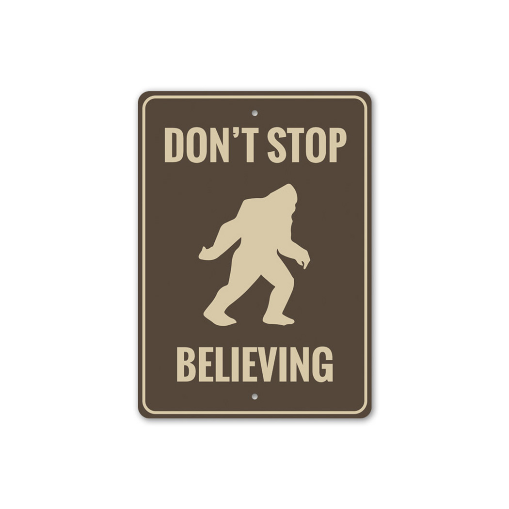 Don't Stop Believing, Bigfoot Campsite Sign, Hilarious Lodge Cabin Metal Sign