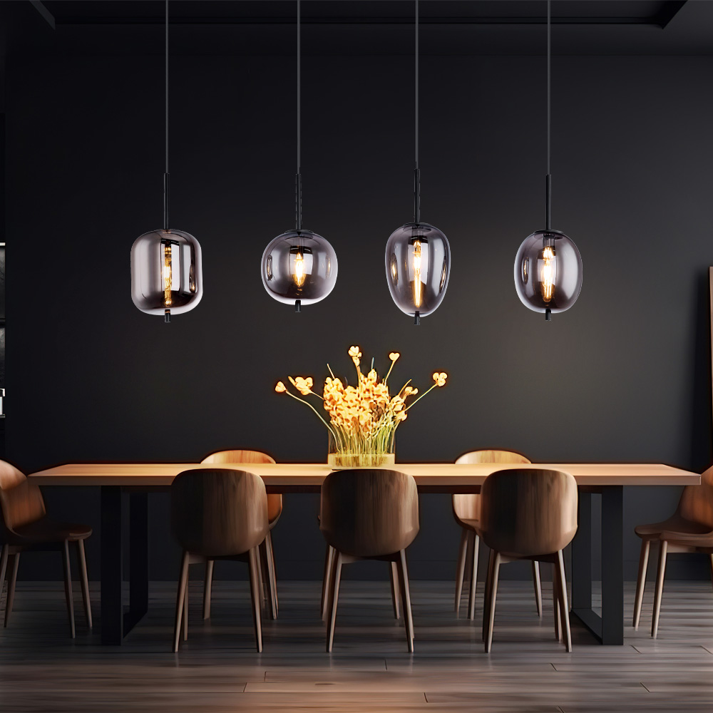 Pendelleuchte Esszimmerlampe Hängeleuchte Vintage 4 flammig Smoky Glas H 120 cm